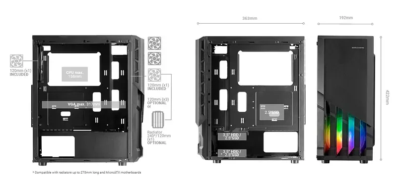 Korpus Mars Gaming MC-X2 Computer case ATX / Steel Front / FRGB 2x FAN / Windows