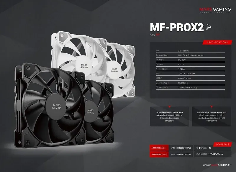 Mars Gaming MFPROX2 2x 120mm PC Case Fan