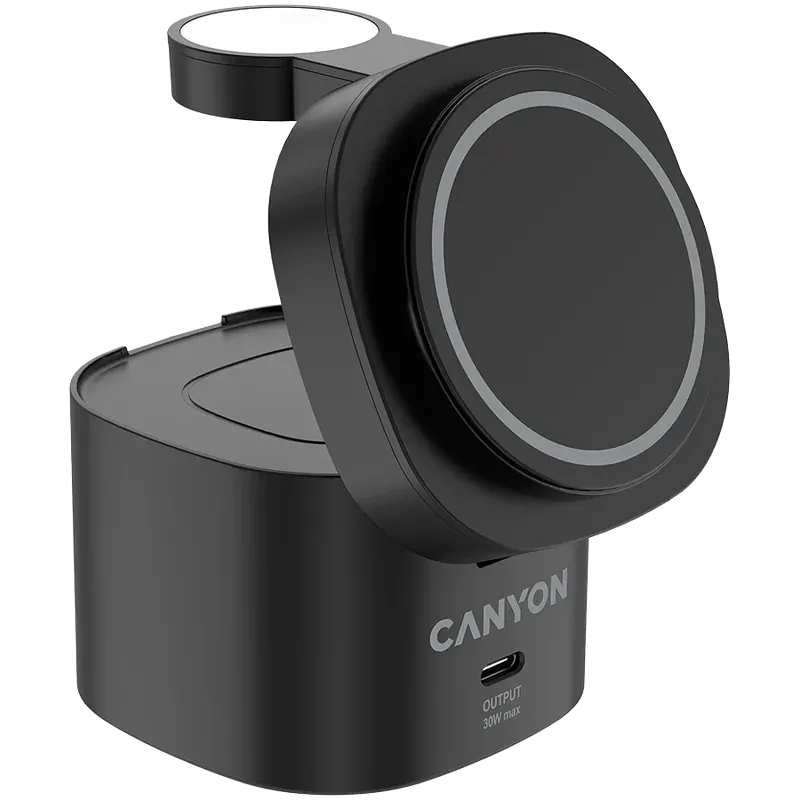 Mobiili lisaseade Canyon 4 in 1 Wireless Charging Stand, 30W max, Size: 70x70x70.3mm, weight: 414g, with 65W charger and 1M cable, black