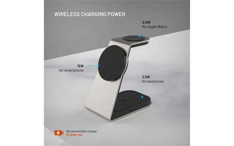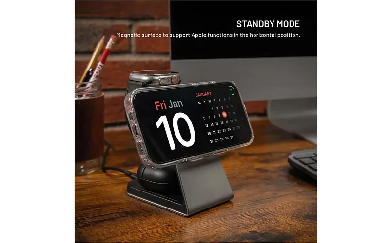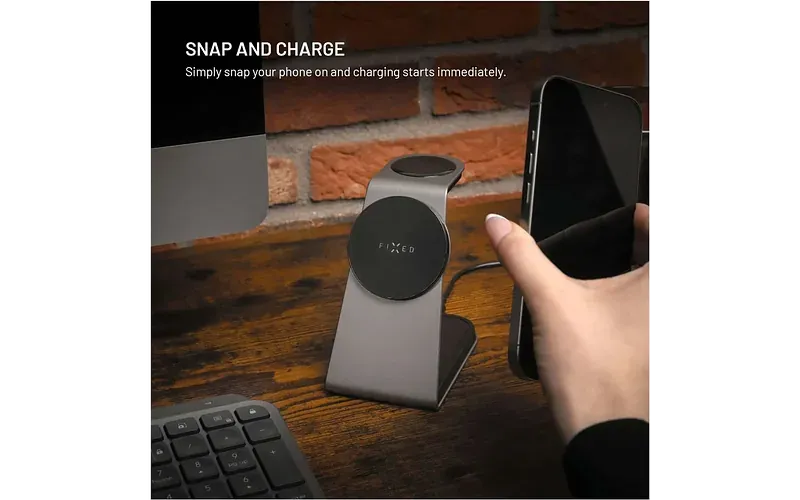 Mobiili lisaseade FIXED FIXED 3-ühes Mag ALU Qi2 juhtmevaba MagSafe laadimisjaam, titaan
