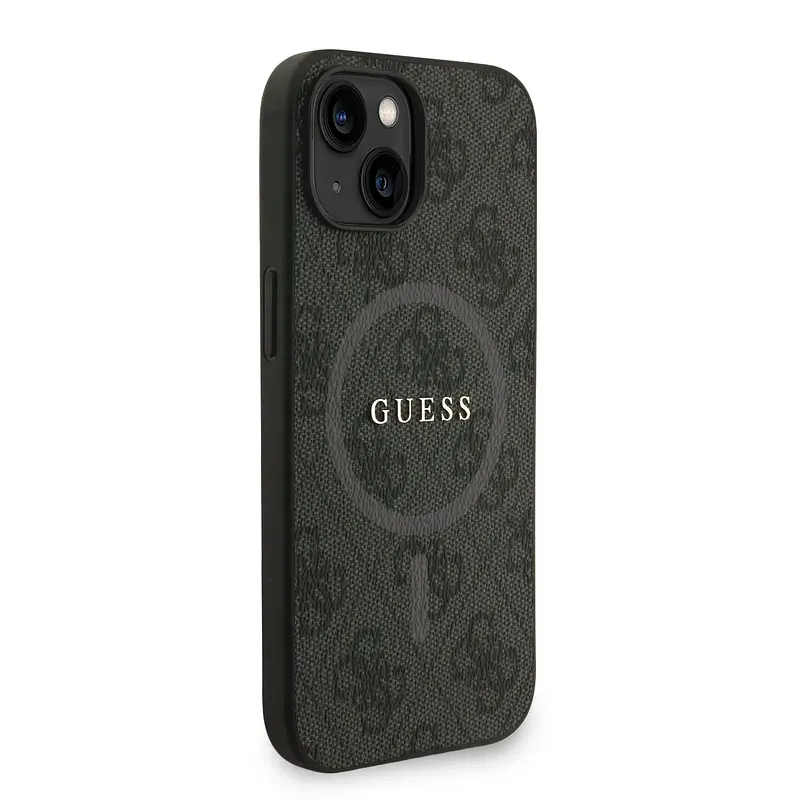 Mobiili lisaseade Guess PU Leather 4G Colored Ring Strap MagSafe Case for iPhone 15 / Black