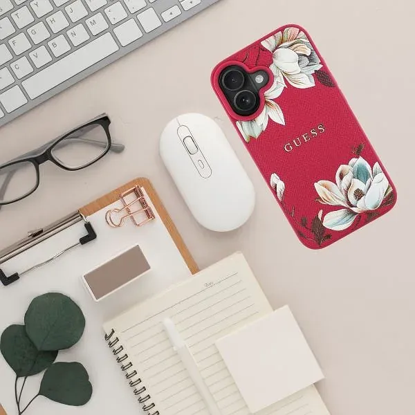 Mobiili lisaseade Guess Kaitseümbris MagSafe iPhone 16 jaoks, roosakas lillimustriga