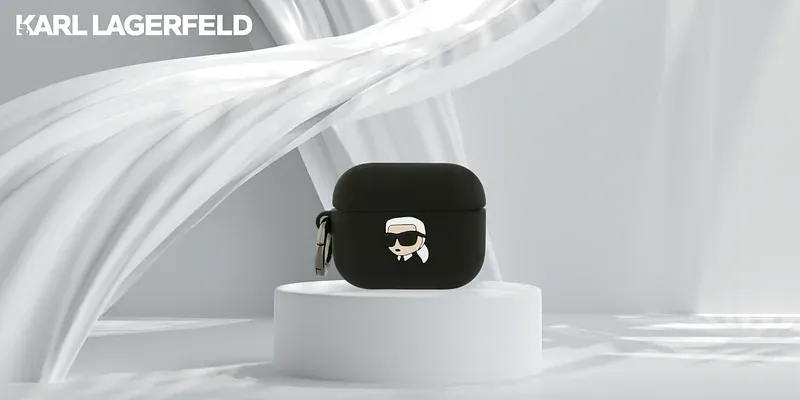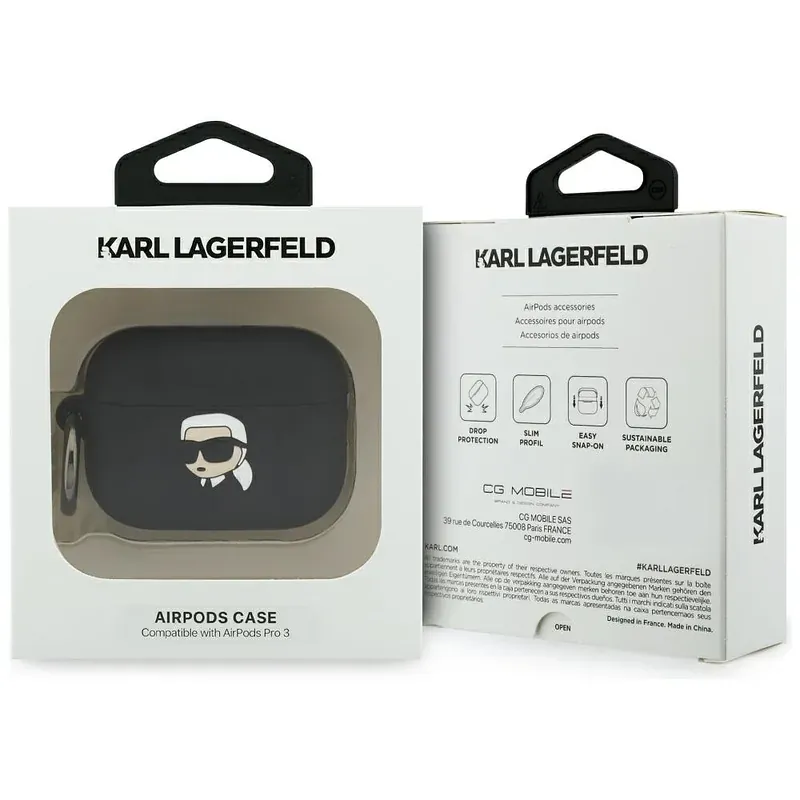 Mobiili lisaseade Karl Lagerfeld Karl Lagerfeldi silikoonist 3D Karl'i pea ümbris AirPods Pro 3 jaoks must