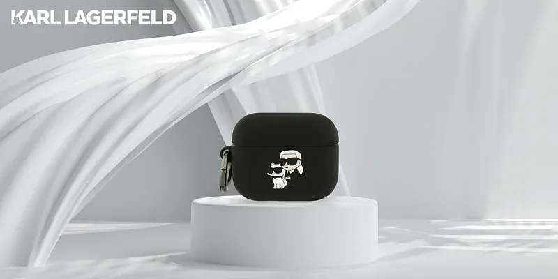 Mobiili lisaseade Karl Lagerfeld Karl Lagerfeldi silikoonist 3D peaga Karl&Chaupette ümbris AirPods Pro 3 jaoks, must