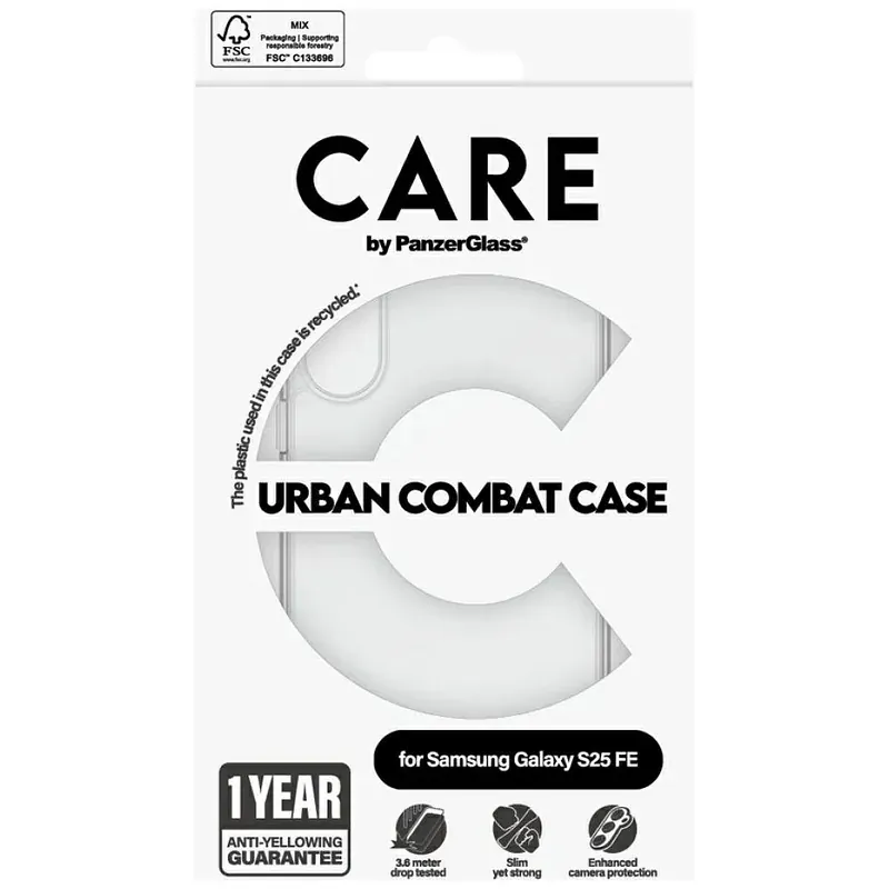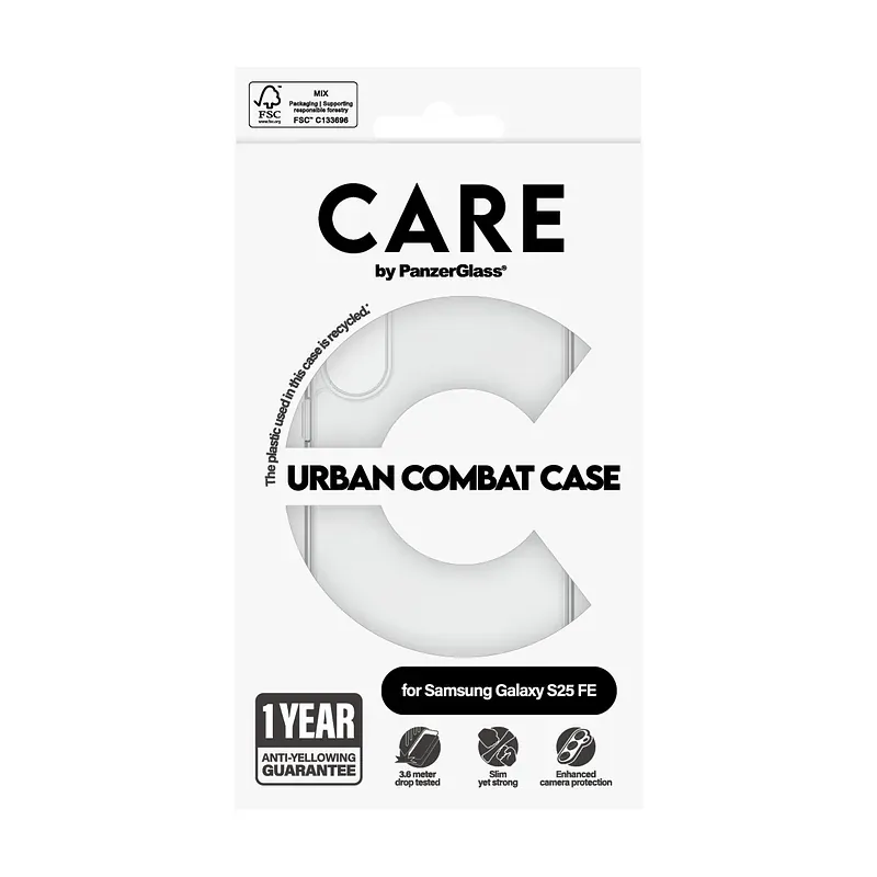 Mobiili lisaseade PanzerGlass CARE by ® Flagship Urban Combat Samsung Galaxy S25 FE 5G mobiiltelefoni ümbris Kate Läbipaistev