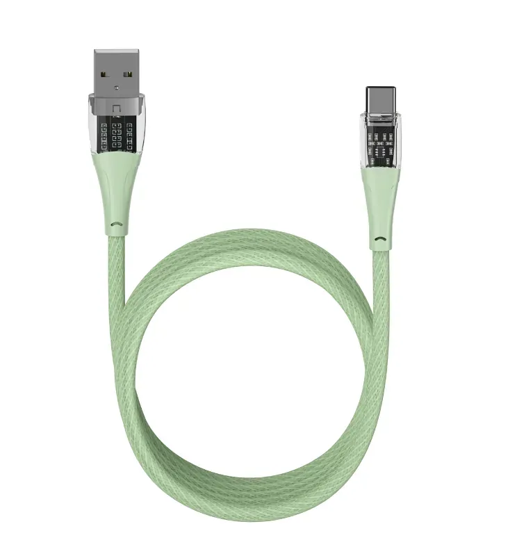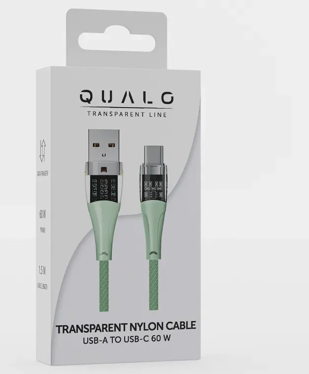 Mobiili lisaseade Qualo QTCN-AC-04 Transparent Nylon Cable USB-A – USB-C / 60W / 1.5m / green