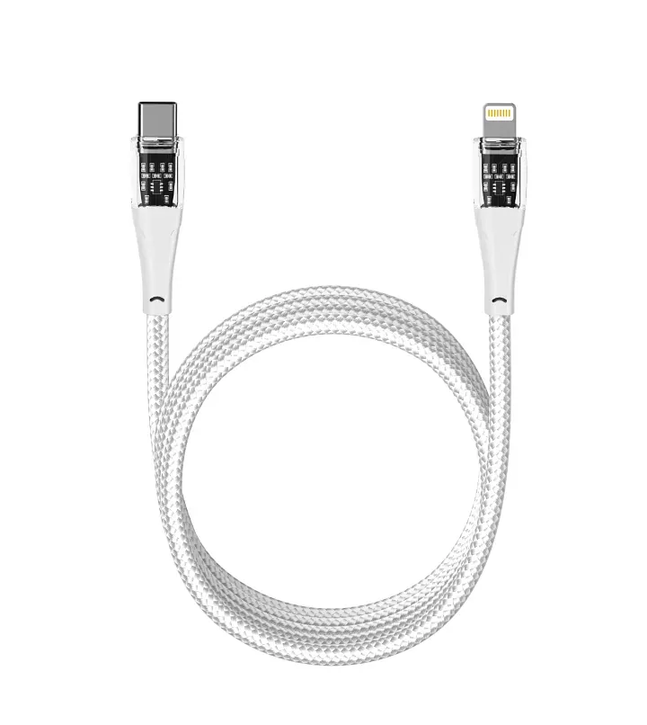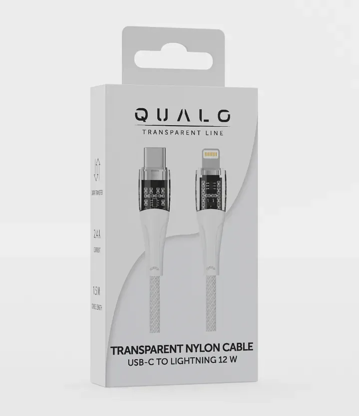 Mobiili lisaseade Qualo QTCN-CL-00 Transparent Nylon Cable USB-C – Lightning / 12W / 1.5m / white