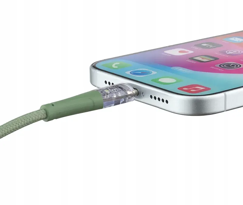 Mobiili lisaseade Qualo QTCN-CL-04 Transparent Nylon Cable USB-C - Lightning / 12W / 1.5m / green