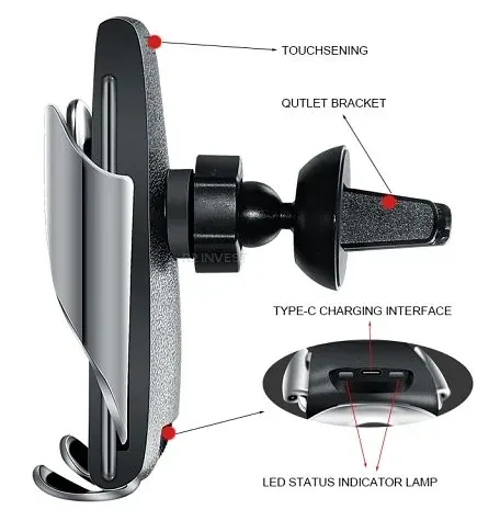 Mobiili lisaseade RoGer S5 Car Holder with Wireless Charging 10W for smartphones