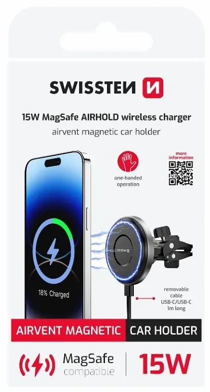 Mobiili lisaseade Swissten Airhold Magnetic Car Holder with Wireless Charger 15W / 7.5W (MagSafe compatible)