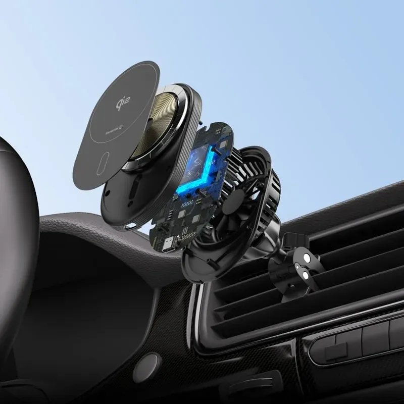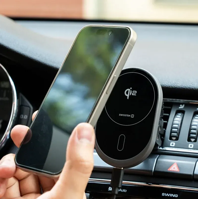 Mobiili lisaseade Swissten Magnetic Car Holder MagRide with Wireless Charger Qi2 15W (MagSafe compatible)