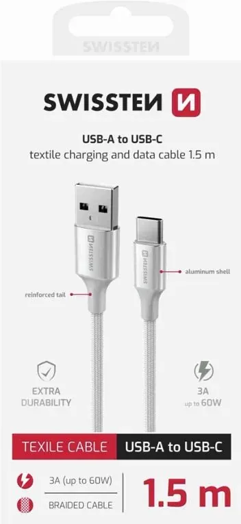 Mobiili lisaseade Swissten Textile II USB - USB-C Data and Charching Cable 1.5m