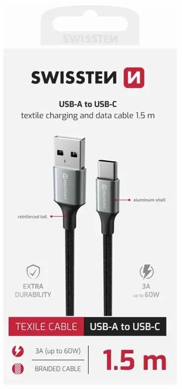 Mobiili lisaseade Swissten Textile II USB - USB-C Data and Charching Cable 1.5m