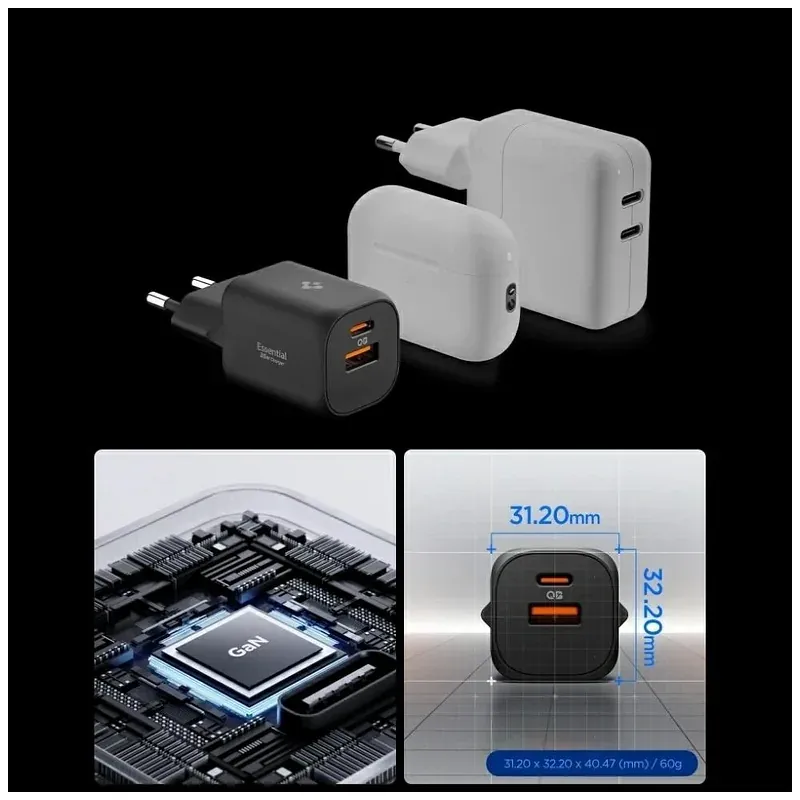 Mobiili lisaseade Spigen Võrgu laadija Essential EE352EU 35W USB-C/USB-A must