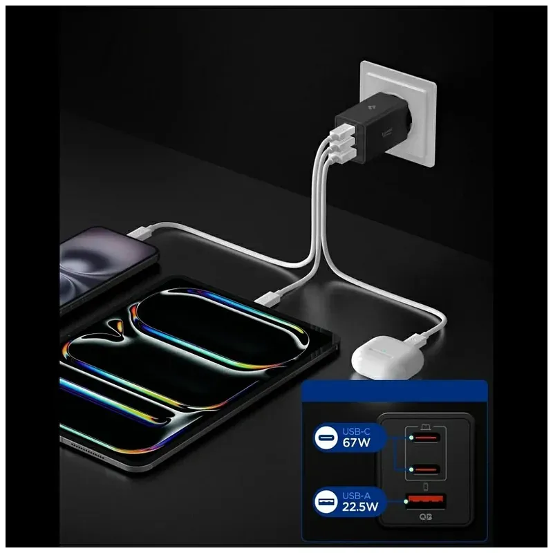 Mobiili lisaseade Spigen Võrgu laadija Essential EE673EU 67W 2xUSB-C/USB-A must