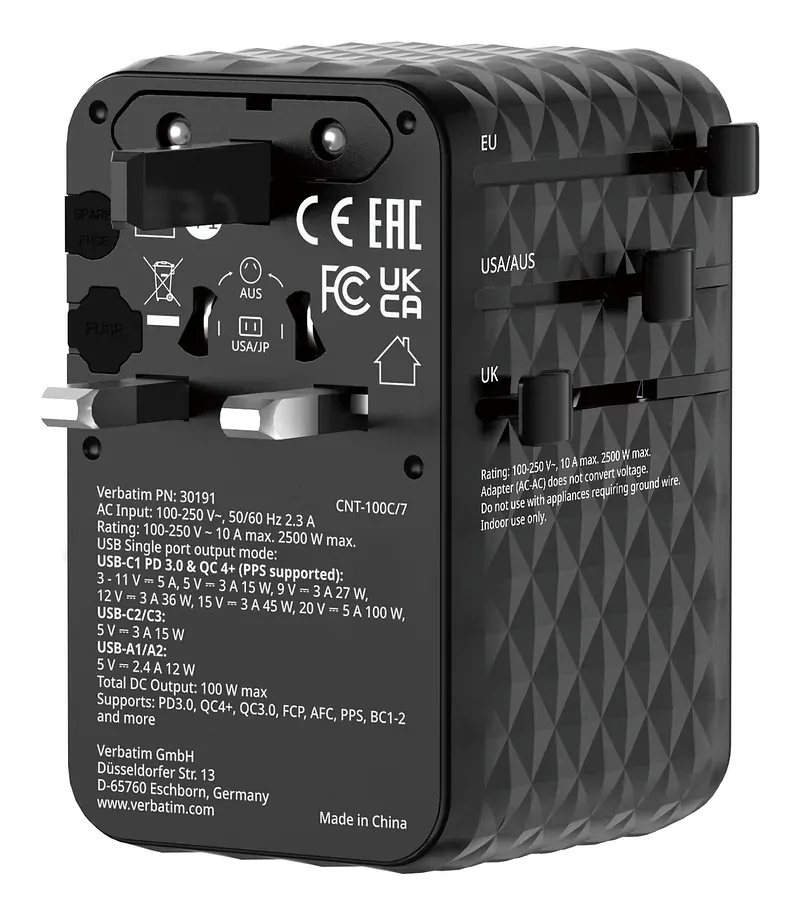 Mobiili lisaseade Verbatim 30191 mobiilseadme laadija Universaalne Must Vahelduvvool Kiirlaadimine Hoonesisene