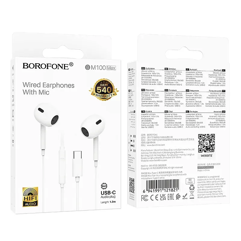 Kõrvaklapid OEM Borofone Earphones BM100 Max Fuente with microphone Type C (DAC) white