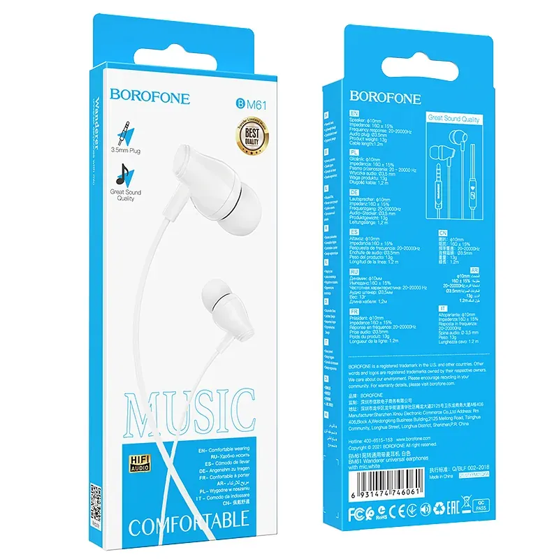 Kõrvaklapid OEM Borofone Earphones BM61 Wanderer with microphone white