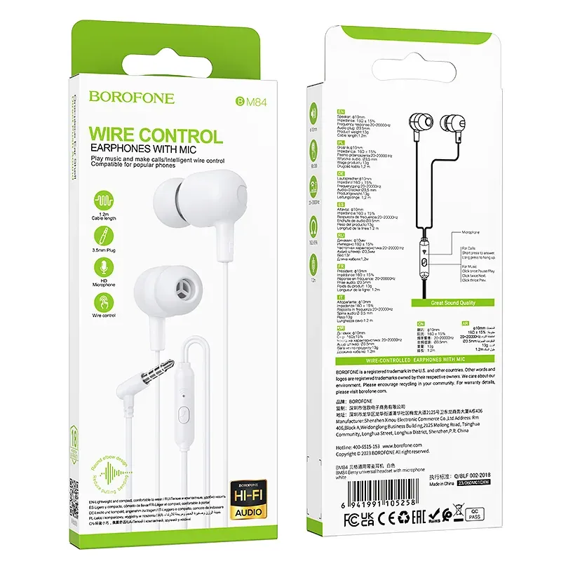 Kõrvaklapid OEM Borofone Earphones BM84 Berry with microphone white