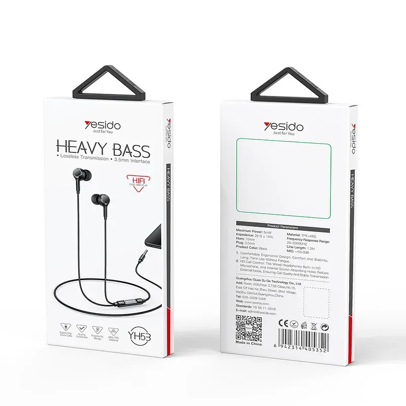 Kõrvaklapid OEM Yesido Earphones YH53 with microphone black