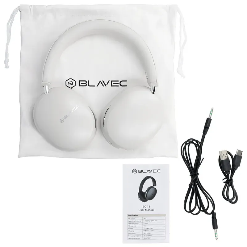 Kõrvaklapid OEM Blavec Over-ear Bluetooth Headphones BO-13 Bass Aceonix ANC (BO13-W) white