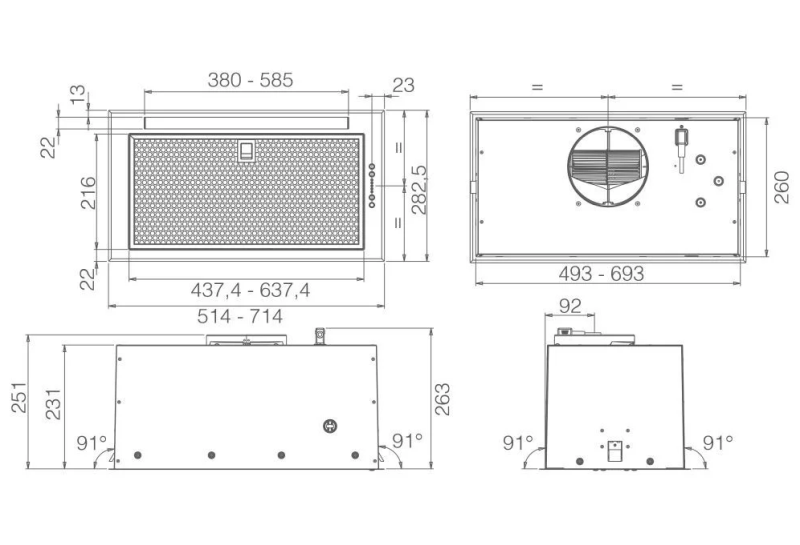 ELICA CT23 BL GR/A/52 PRF0201347 sisseehitatav õhupuhasti, 580 m3/h, hall