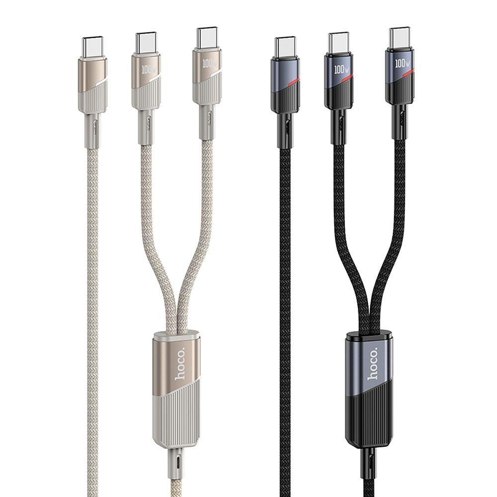 Mobiili lisaseade HOCO Kaabel 2in1 USB C to USB C / USB C 5A 100W 1,2 m U139 kuldne
