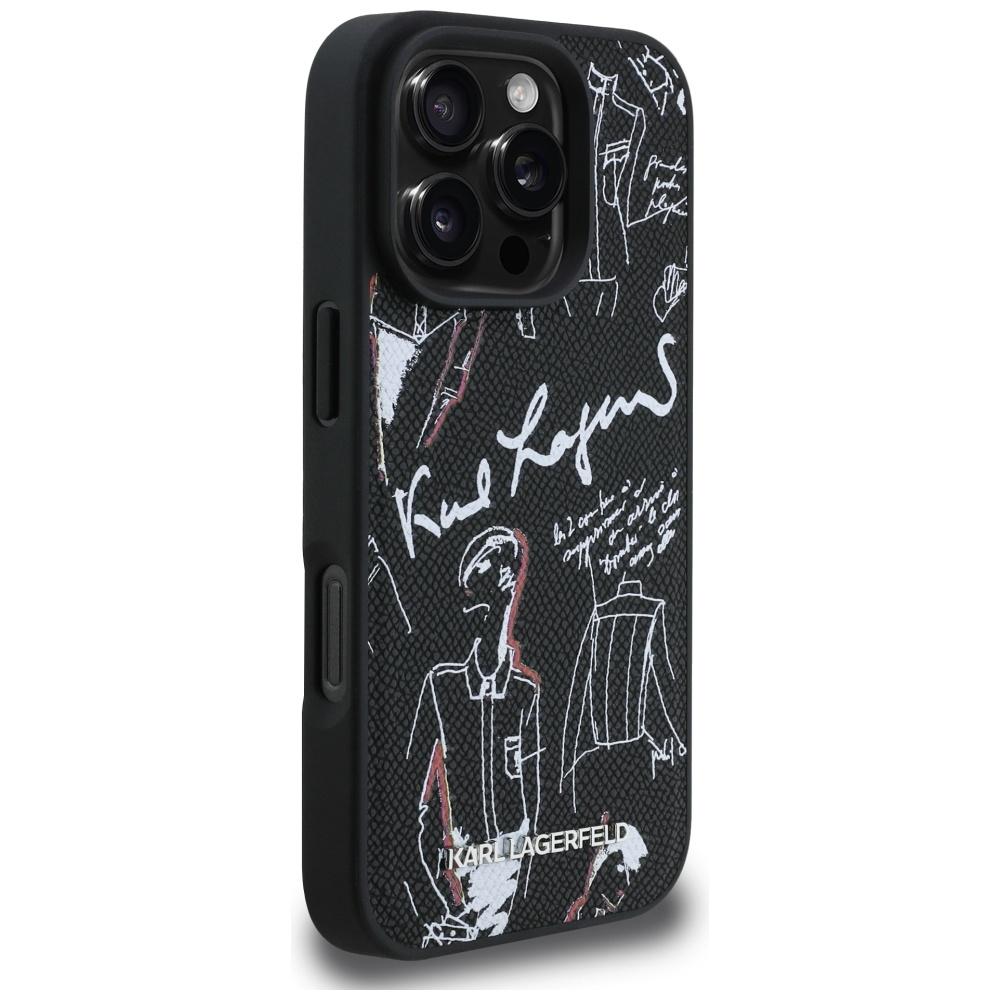 Mobiili lisaseade Karl Lagerfeld Grained Pattern & Logo MagSafe Ümbris for iPhone 16 Pro Max - must