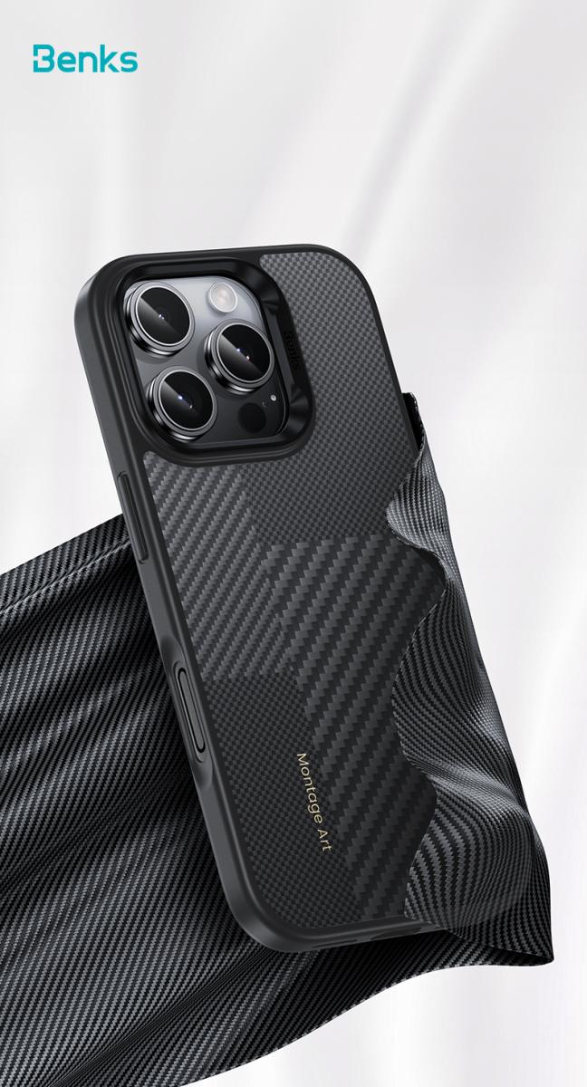 Mobiili lisaseade Benks Montage Magnetic Armor Pro Kevlar Ümbris Metal Frame 600D+1500D (MF66) jaoks Iphone 16 Pro Max must (Camera Control Button)