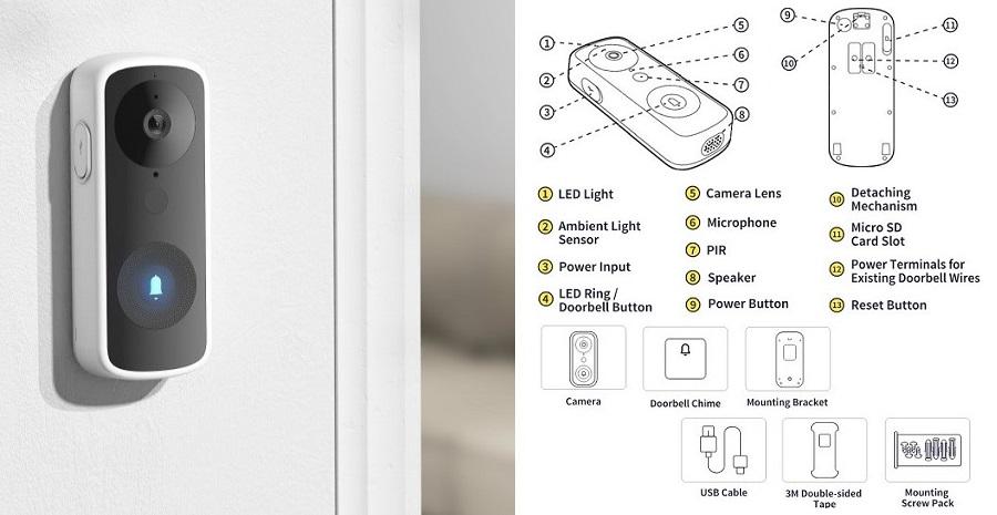 Tuya Video Doorbell, 4MP Aku Camera, Tuya, Wi-Fi