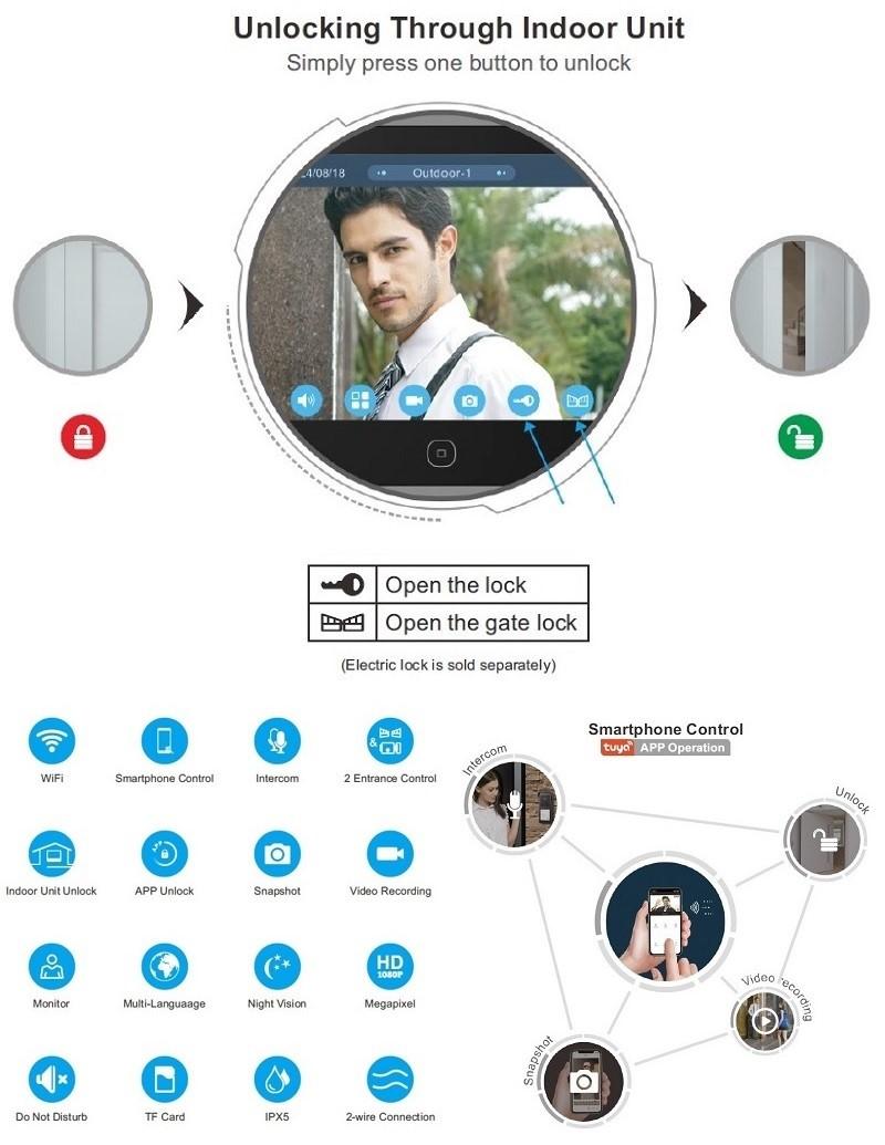 Tuya Video interkom, Tuya, Wi-Fi, 2-juhtmeline