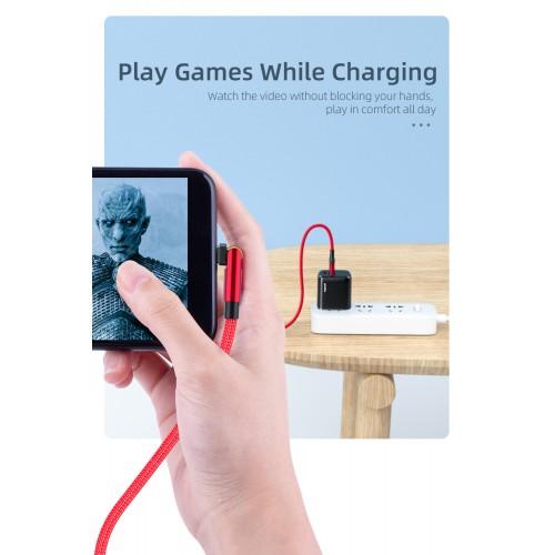 Mobiili lisaseade Essager USB Kaabel "Universal" (180' corner) Punane "Type-C" 200cm (up to 3A)