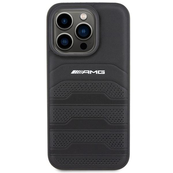 Mobiili lisaseade Mercedes AMG Leather Debossed Lines ümbris jaoks iPhone 15 Pro - must