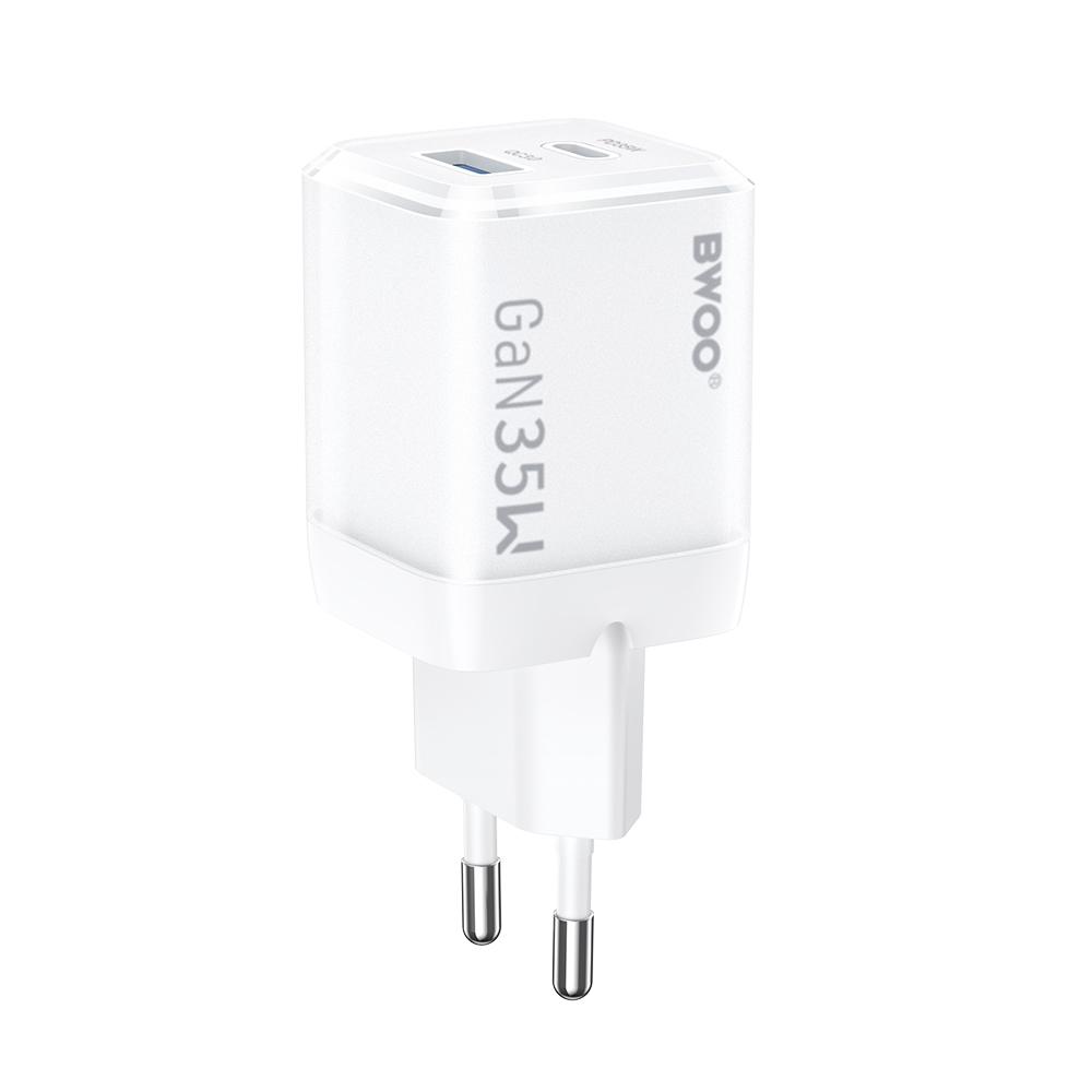 Mobiili lisaseade BWOO GaN wall laadija CDA222 PD 35W 1 x USB 1 x USB-C, valge