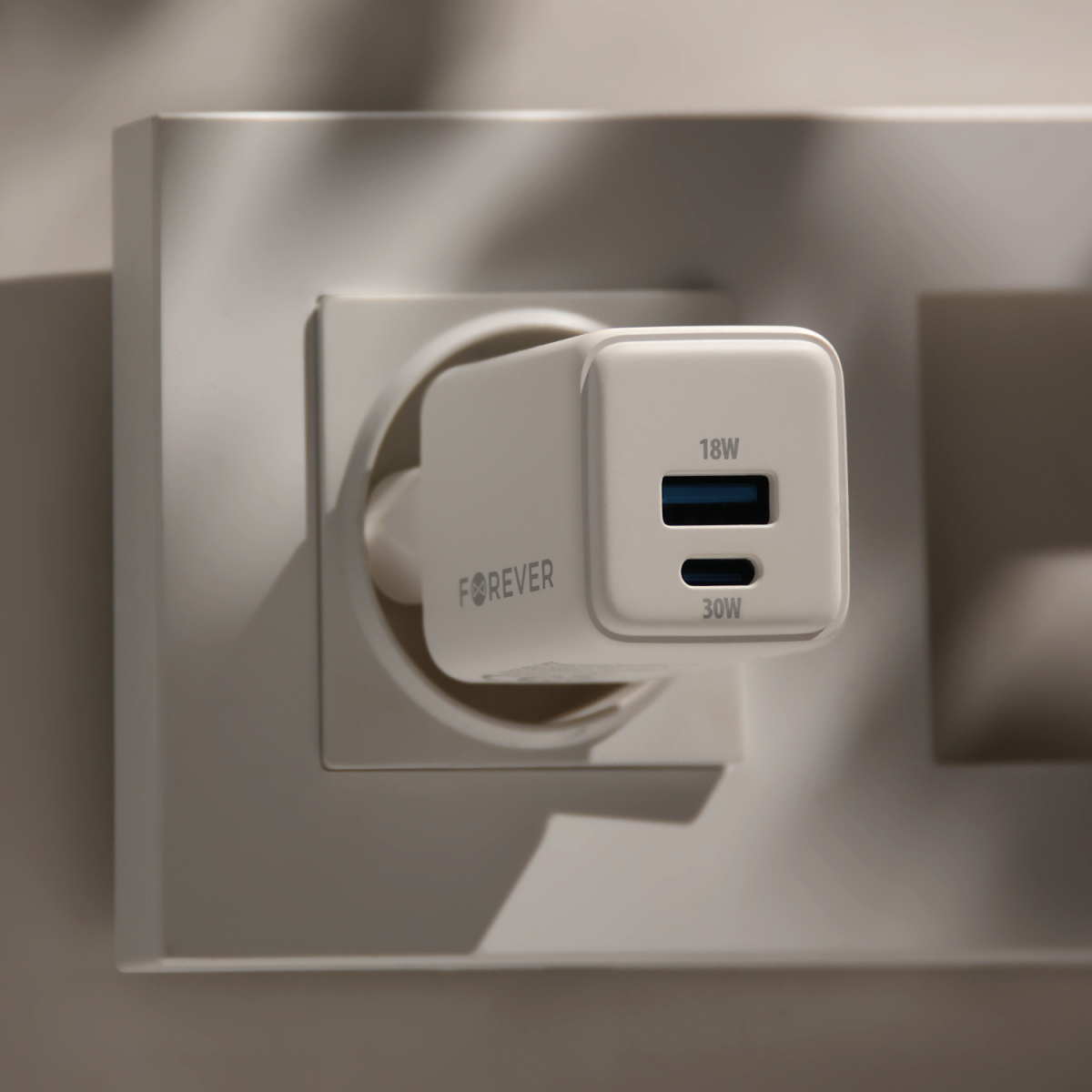 Mobiili lisaseade FOREVER TC-08-30AC GaN PD QC laadija 1x USB-C 1x USB 30W valge
