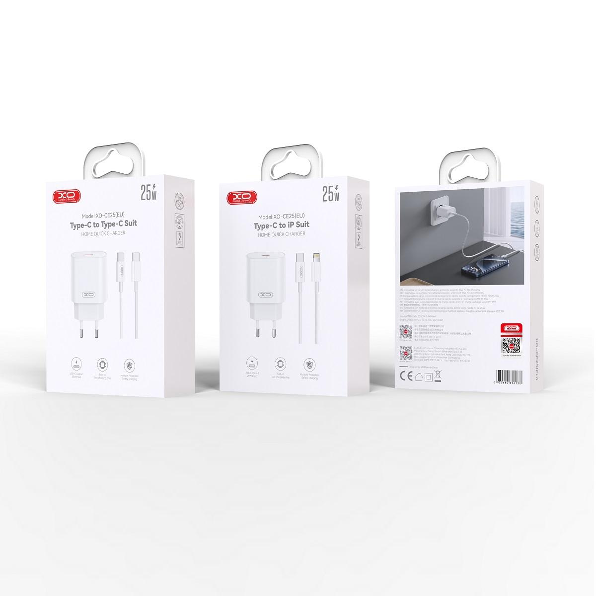 Mobiili lisaseade XO seinalaadija CE25 PD 25W 1x USB-C valge + kaabel USB-C - USB-C