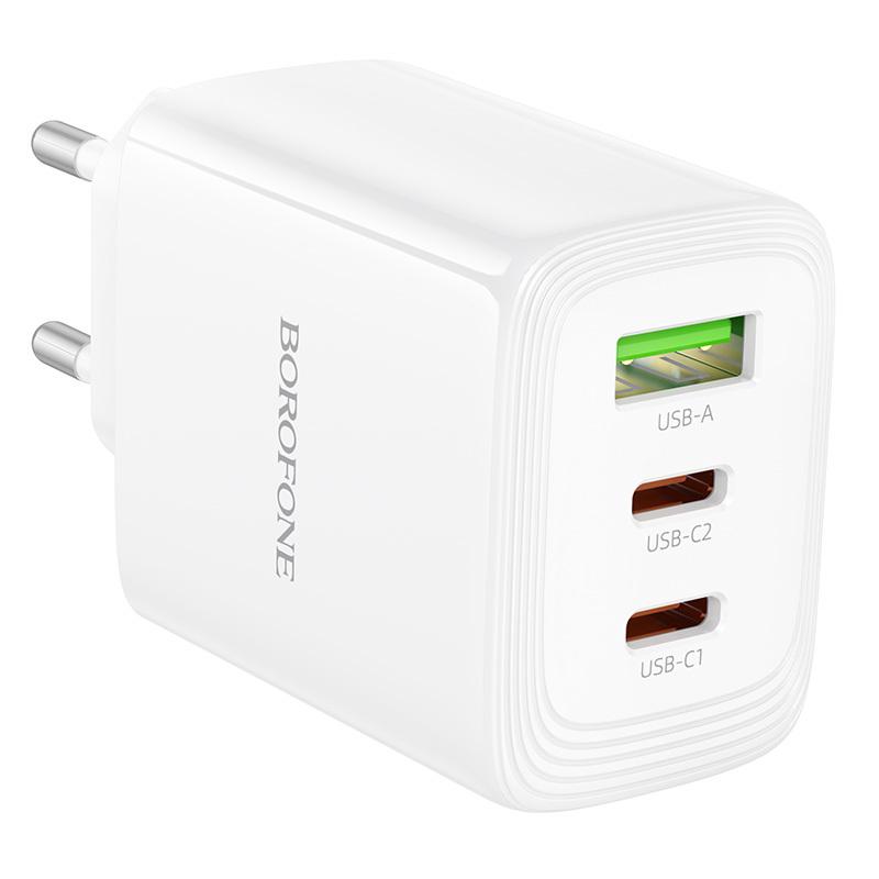 Mobiili lisaseade Borofone Sein laadija BN32 Cargador GaN - USB + 2xType C - QC 3.0 PD 65W valge