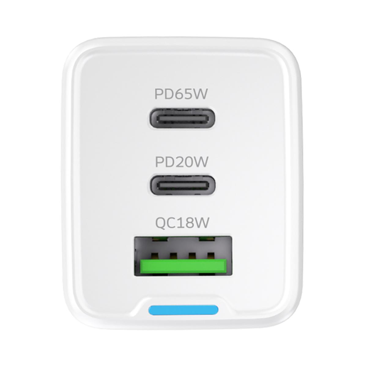 Mobiili lisaseade Wozinsky GaN 65W Laadija koos USB-A 2xUSB-C Ports koos 65W USB-C Kaabel - valge