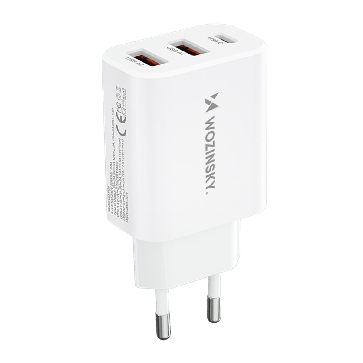 Mobiili lisaseade Wozinsky CWCUCW 30W USB-C / 2 x USB-A Wall Laadija - valge