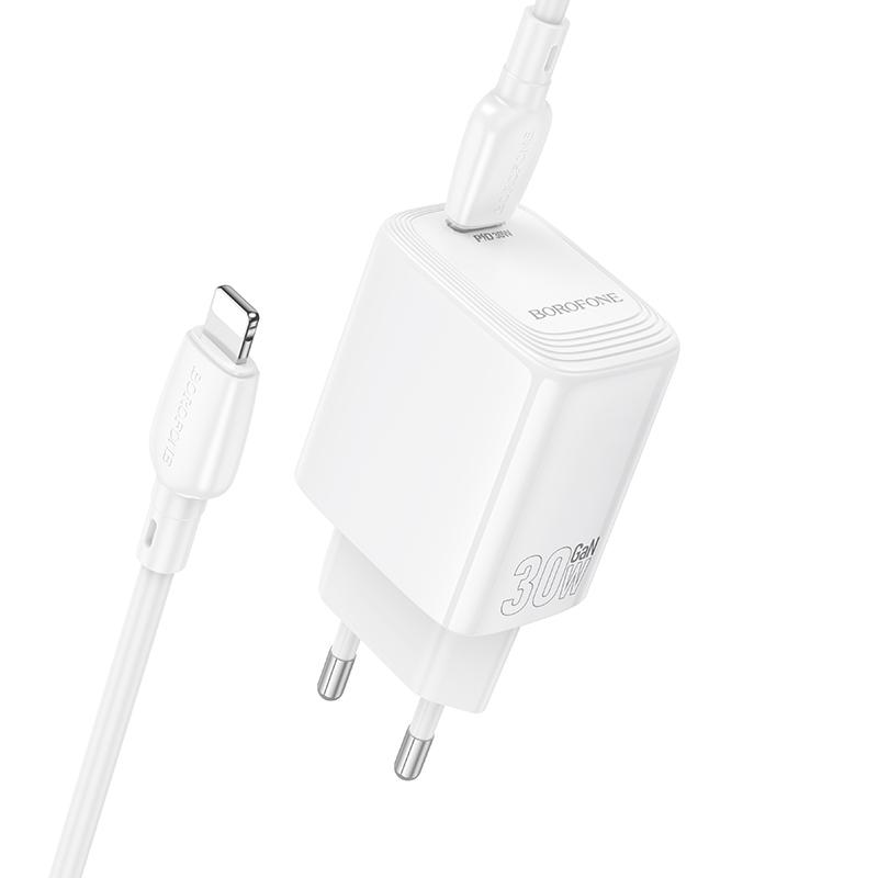 Mobiili lisaseade Borofone Wall Laadija BN28 Fuente - Type C - PD 30W with Type C to Lightning kaabel valge