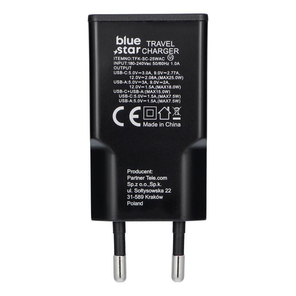 Mobiili lisaseade Blue Star Phone Laadija sinine Star Slim GaN USB C + USB A QC4.0 PD 3A 25W TFK-SC-25WAC must