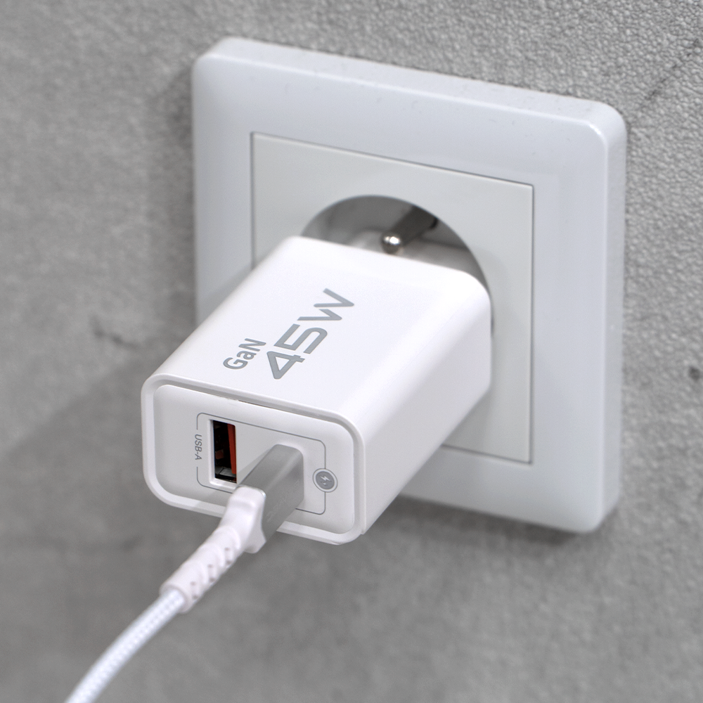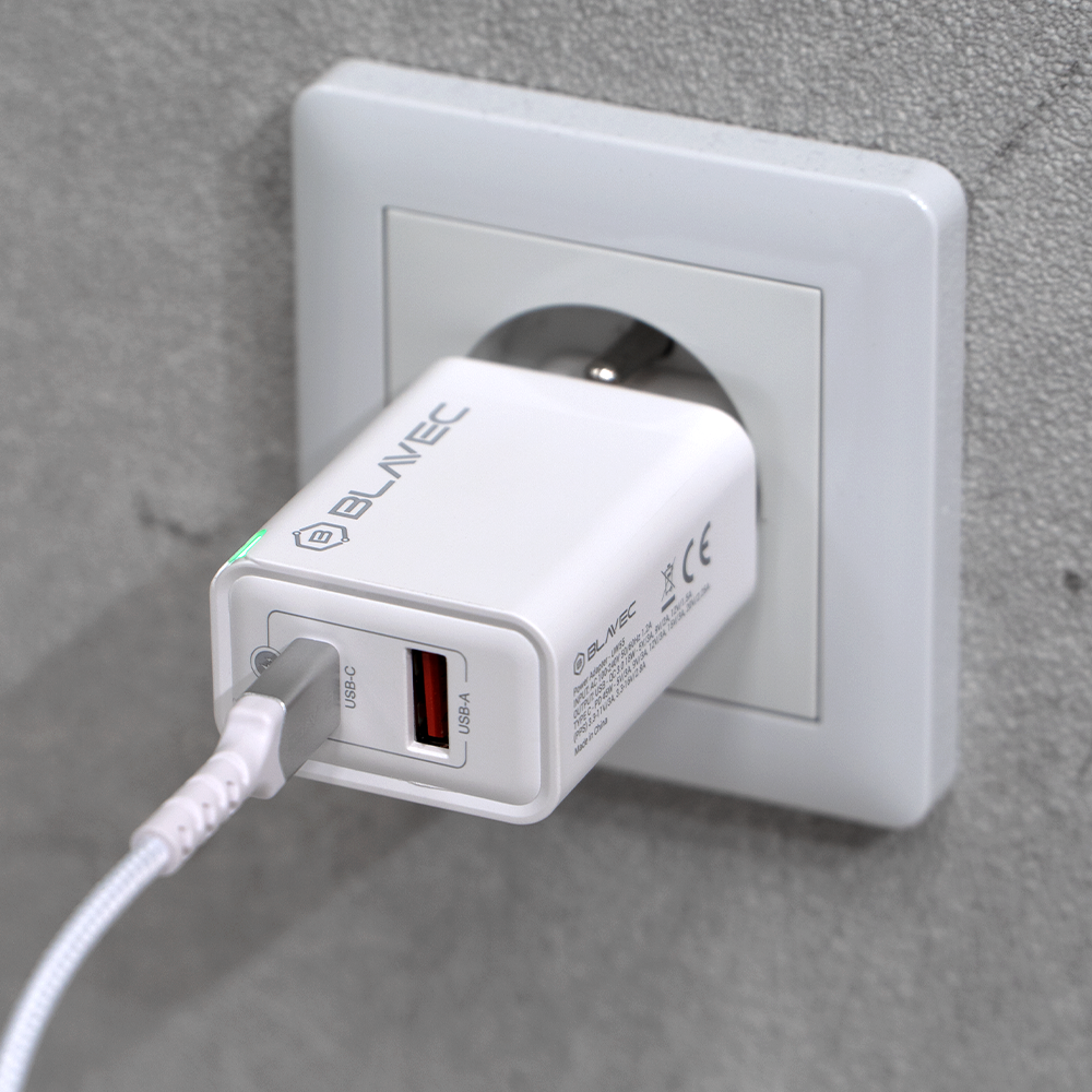 Mobiili lisaseade Blavec Wall laadija BC-5 GaN - USB + Type C - PD QC 45W 3A (TCBC5G-UCW453A) valge