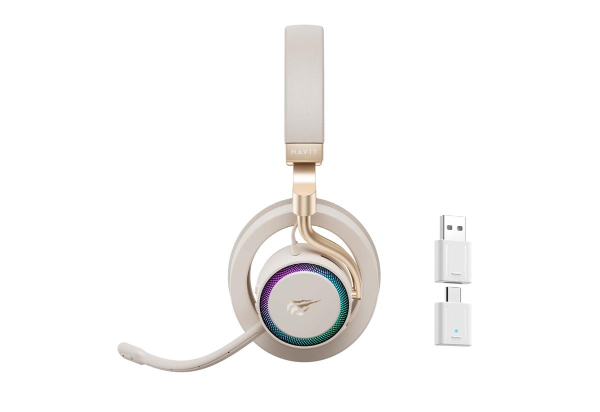 Kõrvaklapid Havit Fuxi-H8 - juhtmevabad mängukõrvaklapid (kuldsed)