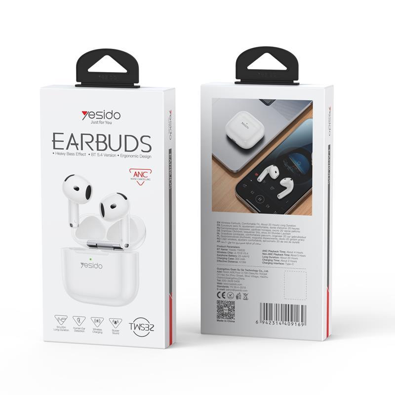 Kõrvaklapid Yesido HEADPHONES TWS32 (ANC) BT 5.4 300mAh valge