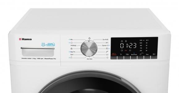 Pesumasin Hansa WHG814DD1W invertermootoriga kitsas 45,7 cm 8 kg, 1400 p/m, auruf-n