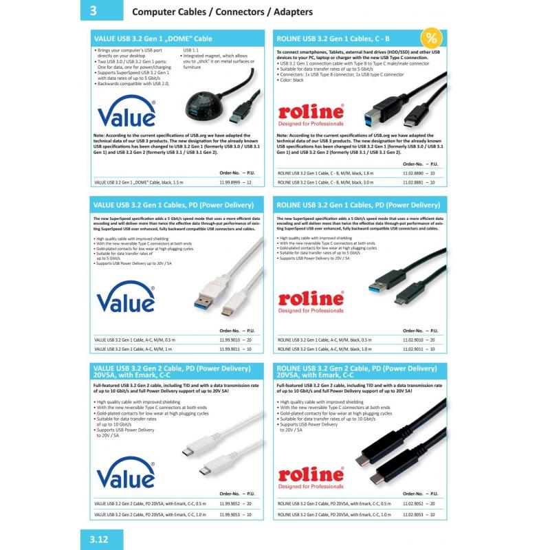 ROLINE USB kaabel - USB-Cable - USB Type C (M) - 9-pole USB Type A (M) - 1 m (USB 3.1) - shaped - black (11.02.9011)