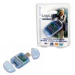 6-in-1 mälukaardi lugeja/kirjutaja, 2 kaardipesa, Toetab: SD, miniSD, microSD/TransFlash, MMC, RS-MMC, MMC Micro, Pendrive lahendus, kaardiadapterit pole vaja, USB 2.0 liides, Mõõtmed: 71 x 35 x 10 mm, Kaal: 23 g.