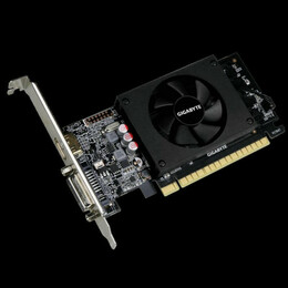 PCI-E 2.0, Core Clock: 954 MHz (Standard: 954 MHz), Memory Clock: 1800 MHz, DDR3, 64-bit, Low Profile, 1xDual-Link DVI-D, 1xHDMI, 1xVGA, 21x144x68mm, Suggested Power requirement: 300W, GV-N710D3-2GL