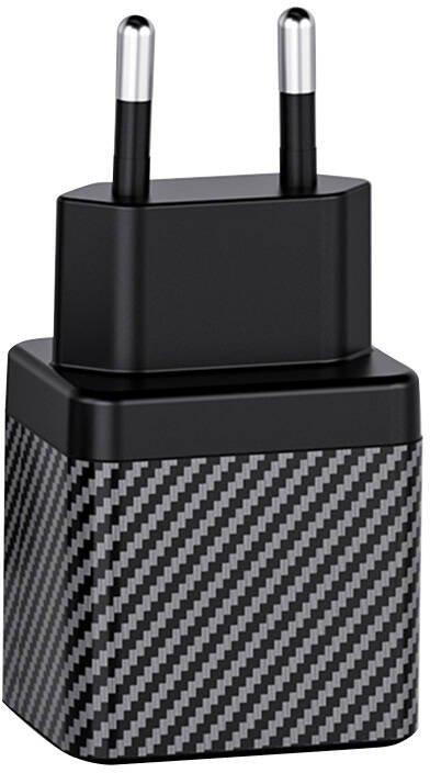 INVZI GaN 2x USB-C Wall Charger, 45W, EU (Black)The 45W INVZI charger combines the latest GaN II technology with an elegant, compact design and features 2 USB-C ports. It allows for fast charging of 2 devices simultaneously using Samsung Super Fast Charging 2.0 technology. It also maintains a low temperature and intelligently distributes power, ensuring the safety of your connected devices.Fast Charging TechnologyThe use of GaN II technology enables fast and efficient charging. Devices supporting Samsung Super Fast Charging 2.0 can be charged at a maximum power of 45W, resulting in minimal waiting time and maximum efficiency.Charging 2 Devices Simultaneously2 USB-C ports made of aluminum not only enhance the charger's aesthetics but also allow you to charge 2 devices at the same time. This feature greatly simplifies daily energy management and saves you time.Wide CompatibilityThe INVZI charger is compatible with the latest Samsung models, including Galaxy S23 Ultra, S23+, S23/A53/A23/A03, Galaxy Z Fold5/4, Galaxy Z Flip5/4, Galaxy Tab S9/S8/S7+, as well as Galaxy Buds 2 Pro/Buds 2/Buds Live and the Galaxy Watch6/5 Pro/Watch5/Watch4 series. It also supports iPhones from the 14/13/12 series, iPads Pro/Air/Mini, MacBook Air Pro, and watches. Additionally, it is compatible with Nintendo Switch and Google Pixel 7/6/Pixel 5 smartphones.Intelligent Power DistributionDynamic power distribution enhances the safety and efficiency of charging. When one port is in use, the power is a maximum of 45W. When both ports are in use, the power is distributed accordingly to provide optimal charging for each connected device.Low Temperature at Maximum EfficiencyThanks to the GaN II technology, the charger maintains a low temperature even at maximum load. As a result, you can enjoy greater safety and longer lifespan for your devices.Compact and Portable DesignThe compact design of the charger (40.3 x 39 x 30 mm) makes it an ideal solution for people on the go. You can easily fit it into any bag or backpack. Manufacturer INVZI Model GH4512EU Ports 2x USB-C Plug Type EU Power 45W (max.) Color Black