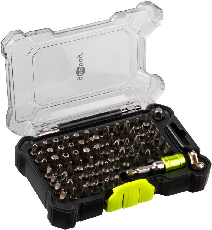 Kruvikeerajakomplekt 100 otsikuga tööriistakomplekt kruvimiseks, kokkupanekuks ja isetegemisprojektideks, valmistatud S2 terasest Viimane otsikukomplekt, mida Sul kunagi vaja läheb: Lisaks rist-, lapik- ja kuuskantotsikutele sisaldab see kruvikeerajakomplekt ka erikujulisi otsikuid, mida väiksemates komplektides tavaliselt ei leia. Kummist käepideme ja ergonoomilise kujuga kruvikeeraja tagab mugava ja täpse töö nii kodus kui töökojas. Omadused: Praktiline kruvikeerajakomplekt standardmõõdus otsikutega, mis sobivad ka tavalistele akukruvikeerajatele Läbimõeldud disain: lühike kruvikeeraja kummist käepideme ja rätslufunktsiooniga – mugav ja vähe väsitav kasutamine (ava: 1/4 tolli) Komplektis: 1× padruniadapter 1× otsiku pikendus (60 mm) 1× padrunivõtme pikendus (50 mm) 1× rätsluadapter 1× Y-kujuline otsik konksude pingutamiseks 99 otsikut löögikindlast S2 terasest: 4× lapik 24× ristpea (PH, PZ) 22× Torx (T, TH) 4× tri-wing 4× ruut (S) 31× kuuskant (H, hex pin) 3× 12-punktiline (M) 3× sidur (C) 4× kahar (U) Täpsusotsikud pikkusega 28–32 mm, tüübimärgistuse ja piktogrammidega karbis selguse huvides Läbipaistev kaas tagab kiire ülevaate Kompaktne ja praktiline formaat teeb komplekti mugavaks hoiustada tööriistakastis või kasutada liikvel olles